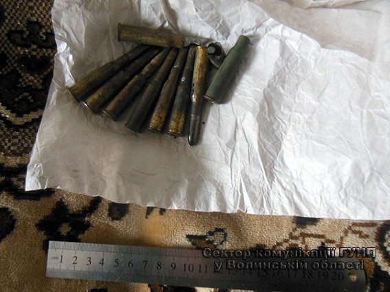За місцем проживання 55-річного мешканця селища Маневичі правоохоронці вилучили вісім патронів калібру 7.62мм, ствол до нарізної зброї, незареєстровану рушницю та два штик-ножі.