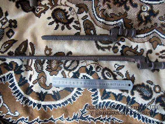 Патрони, рушницю та штик-ножі вилучили у волинянина. Про це інформують у Секторі комунікації ГУНП у Волинській області.
