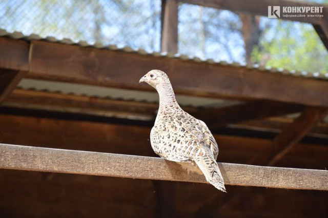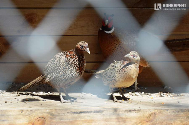 Лісівники сподіваються, що птахи спробують плодитися не лише у природніх умовах на волі, а й у вольєрах.Одна пташка висиджує 8-18 яєць від 21 до 29 днів. Тому тут є окремі «кімнатки», де поселили по три самочки та одного самця. Це природні пропорції для цих птахів у закритих умовах. Назовні вони стають більш моногамні. Поки що пташенят чи кладки лісівники не бачили.Це самочка-фазанЦе самець-фазан