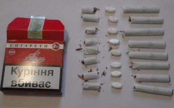 Як з’ясувалося, у посилці було 8 пігулок білого кольору невідомого походження із написом «В 8», які приховали всередині цигарок «Прима».