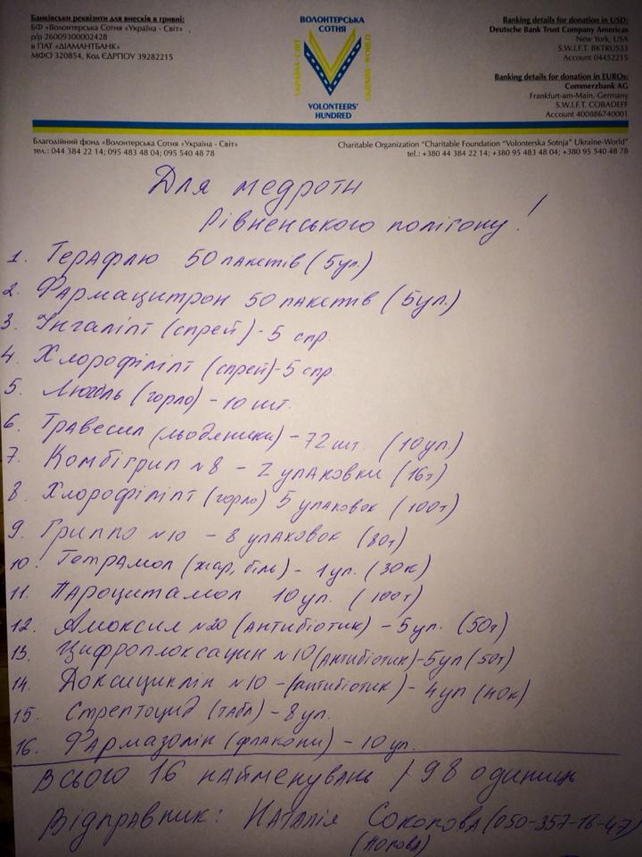 Якщо ви бажаєте долучитися до збору медикаментів та формування аптечок для волинських бійців, картка ПБ координатора Катерини СИЛЮК 5168 7572 6528 9464.