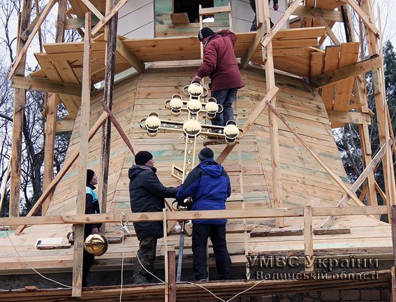 Волинські правоохоронці встановили хрест на куполі майбутнього храму святого князя Олександра Невського.