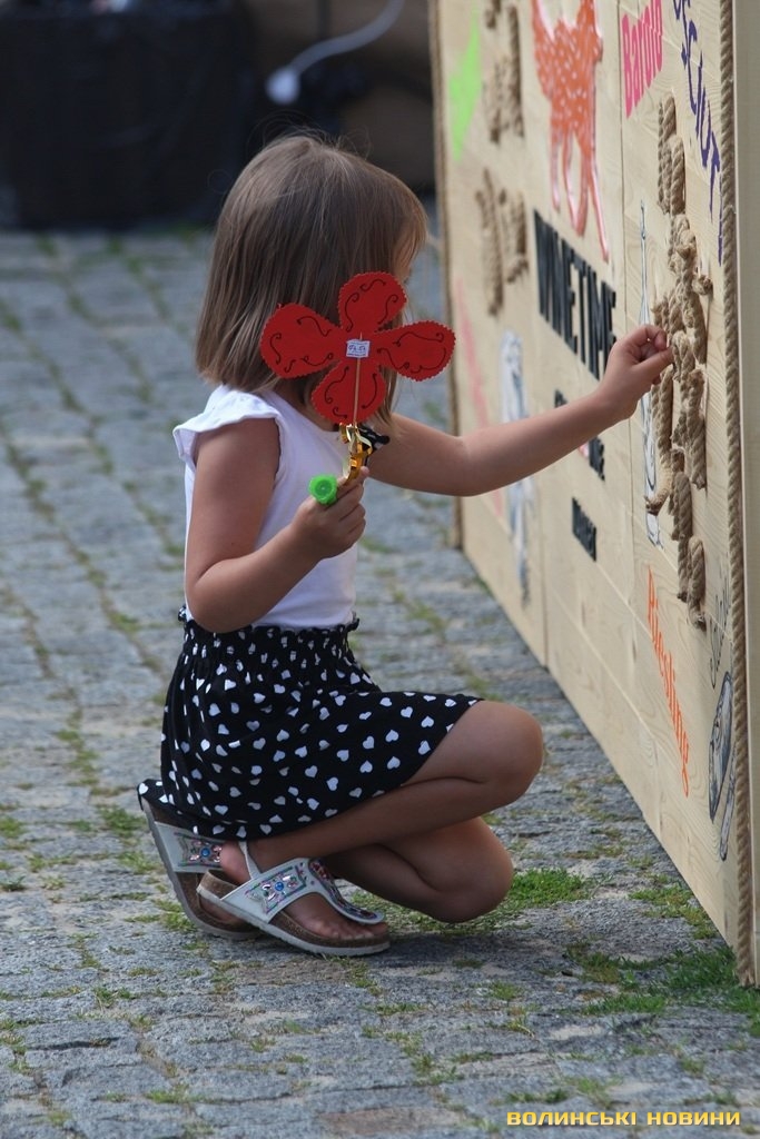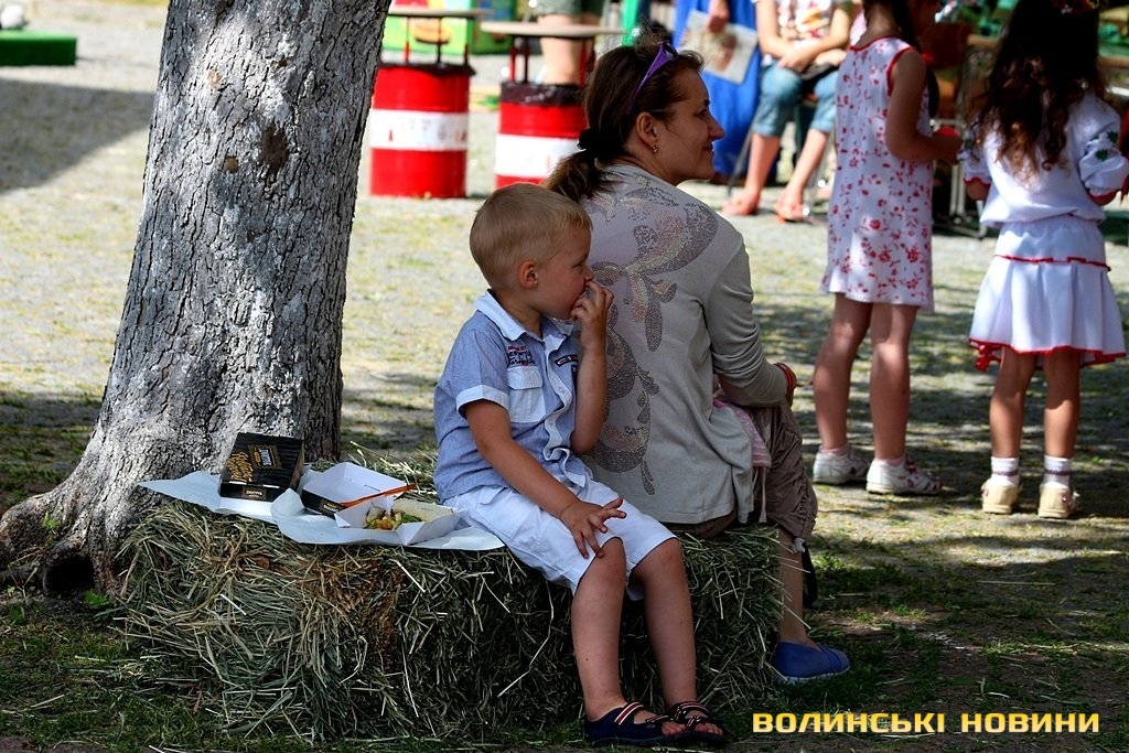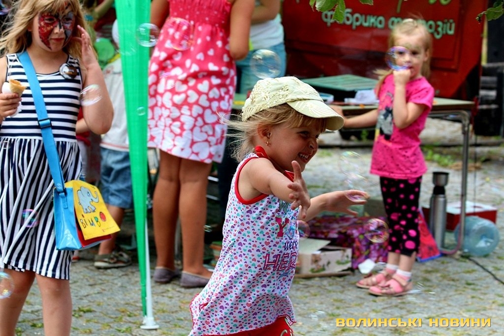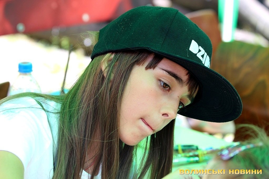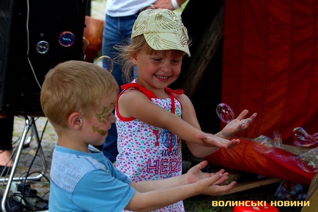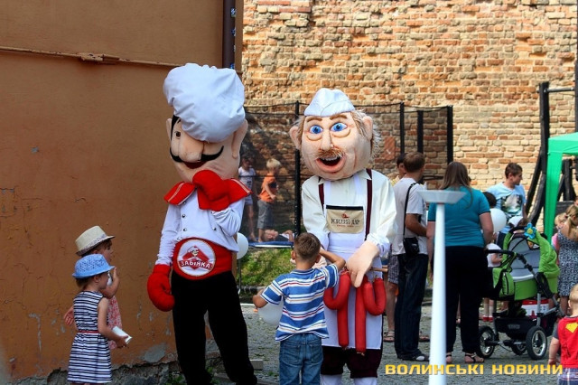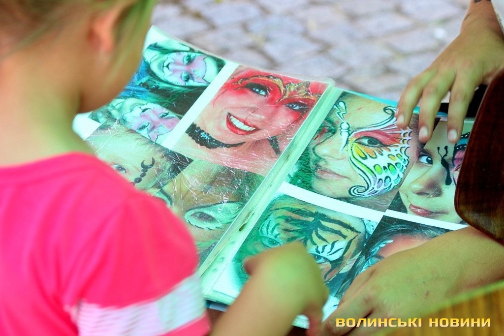 А от молоді люди із студії «Фа-Фа», що розшифровується як «Фабрика Фантазій» тішили малюків різнобарвним боді-артом та іншими цікавими розвагами.Зі слів юних «художників» Ксені та Романа, боді-арт у стінах Луцького замку – абсолютно безкоштовний.Малюють звичайною фарбою гуаш.Малюнок тримається до тих пір, поки його не струть чи не змиють. Найчастіше дітки просять намалювати метелика, сердечко, квіточки або ж прапори з гербами.Нагадаємо, 28 червня, у перший фестивальний день, працівники ТМ «Забіяка» виготовили 5-метрову ковбасу вагою півтонни. Тим самим вони встановили рекорд, який офіційно зареєстрували у Книзі рекордів України в розділі «Гастрономічні вироби».