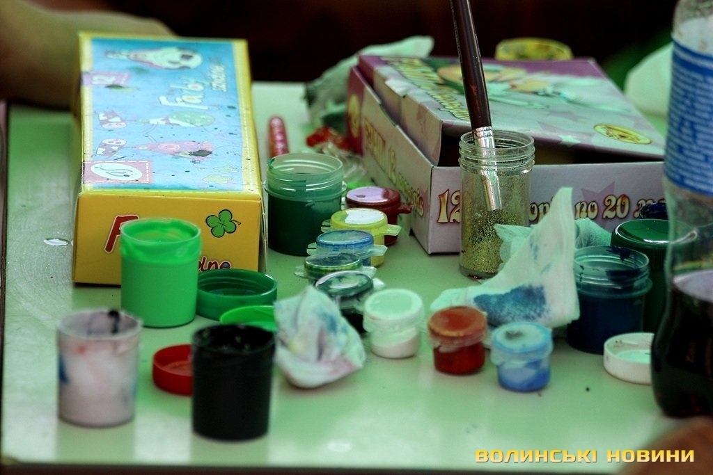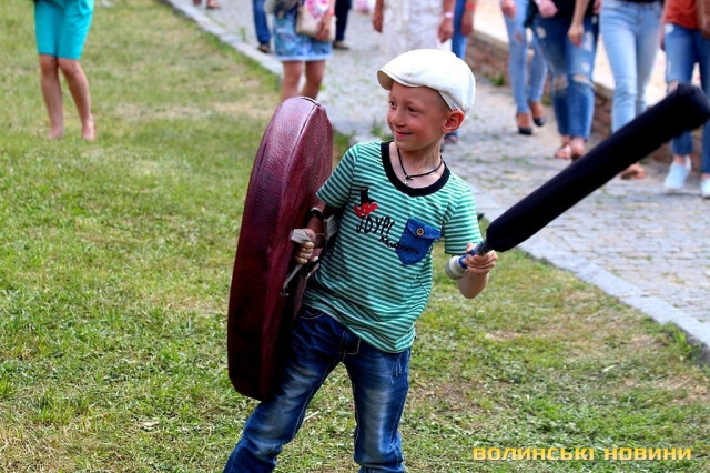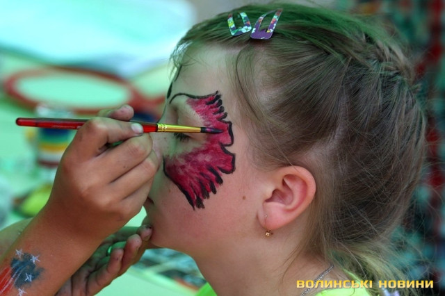Імпровізовані бої на тренувальних мечах для дітей та дорослих пропонували й луцькі «лицарі» Олексій Дмитрієв та Андрій Порщ, а також прекрасна леді Валентина Кіренкова, яка навчала усіх охочих стріляти із лука«Волонтери з ГО «Фундація розвитку громад» попросили нас зібрати кошти для хлопців з АТО.Своєю чергою, ми даємо діткам можливість розважитися й взяти участь у імпровізованих боях тренувальними мечами та щитами. Працюємо протягом двох днів. Ближче до ранку людей менше, а уже після обіду гості стають більш активними. Жодних вікових обмежень до розваги немає. Жодних фіксованих цін – скільки людина може собі дозволити, стільки й платить», - зазначив Андрій та запропонував журналісту приміряти середньовічного лицарського шолома, або ж «отримати на горіхи» м’яким мечем.Який боді-арт найпопулярніший серед луцької малечі?
