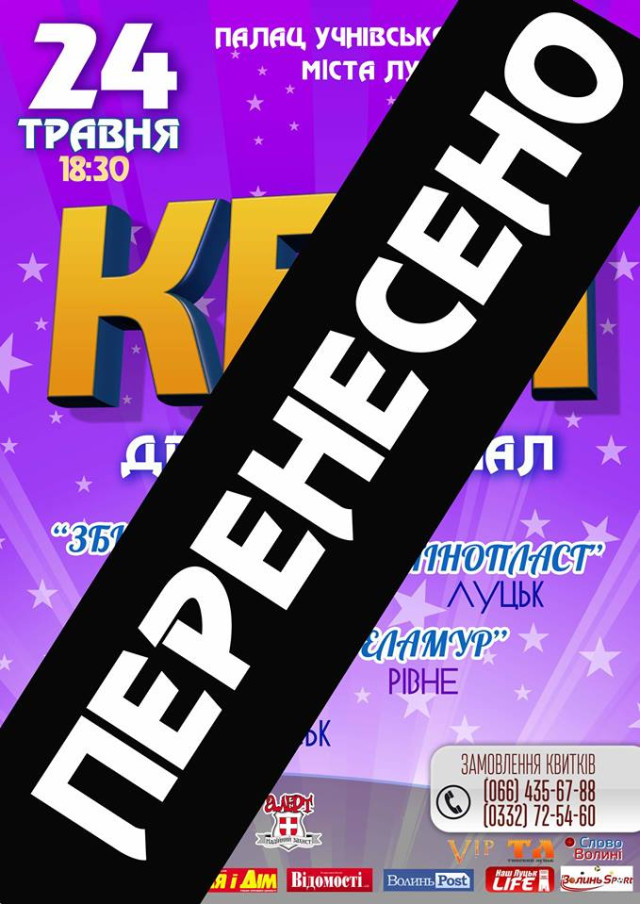 В зв'язку з трагічними подіями на сході України, які зумовили смерті волинських військовослужбовців, Волинська асоціація КВН оголошує про відміну другої півфінальної гри Всеукраїнської ліги КВН "Волинь" та перенесення її на невизначений термін.
