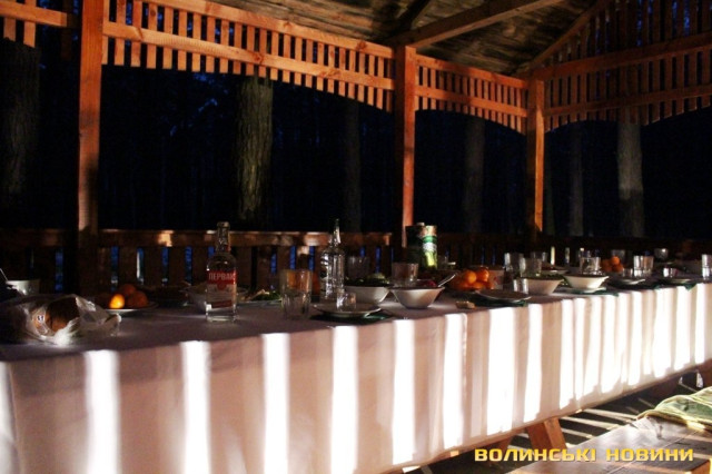 Виїхавши спільно з представниками Автомайдану України на територію мисливського господарства, швидко виявили альтанку, в якій побачили стіл, накритий на приблизно два десятки персон, поряд з яким варили куліш двоє жінок та двоє чоловіків. Поблизу стояло декілька автівок. Цікаво, що одна з присутніх жінок, єгер Орися Бандура розповіла, що наразі перебуває у відпустці, а готує куліш для себе та присутніх осіб. Не вдалося з’ясувати і приналежність автомобілів, що стояли неподалік.