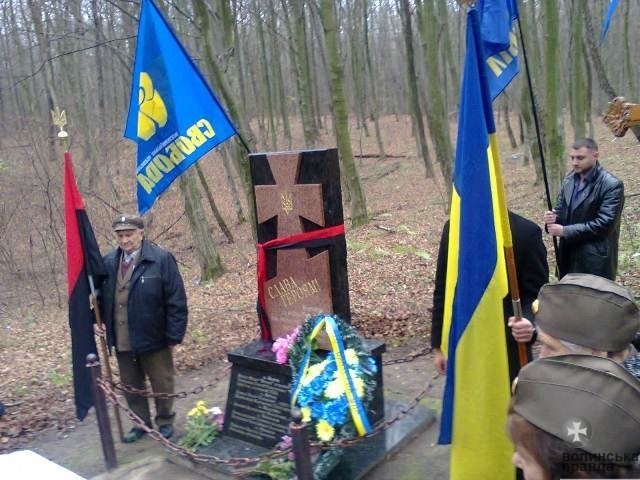 Біля пам’ятного знака тим, хто загинув за волю України, зібралися як сивочолі ветерани Волинського братсва вояків УПА імені Клима Савура, так і молодь та малеча. До слова, після панахиди, яку проводило православне духовенство, чимало охочих висловили бажання виступити.