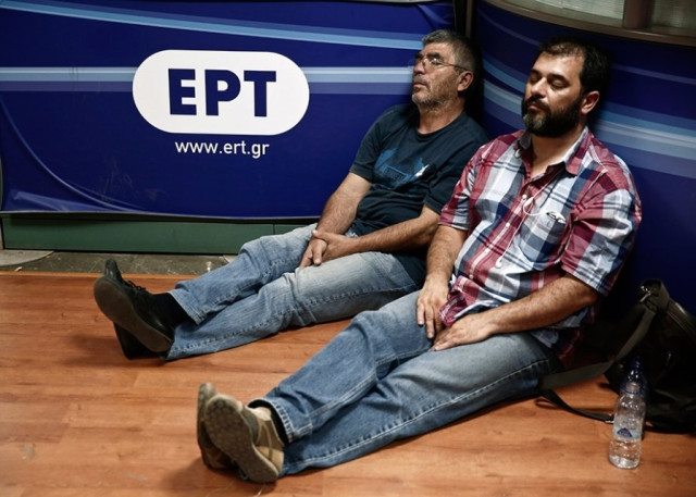 Профспілки різко засудили прийняте урядом рішення про закриття провідного мовника країни. Журналісти та представники лівих партій чинять опір затвердженню рішення, хоча мовлення припинили вже опівночі 11 червня. Співробітники ERT при цьому відмовилися залишати робочі місця і після того, як їм відключили ефір, продовжили мовлення в інтернеті. Саме в інтернет-ефірі ERT лідер лівої опозиції Алексіс Ціпрас заявив, що рішення консерваторів на чолі з прем'єр-міністром Антонісом Самарасом закрити держтелерадіо можна порівняти з державним переворотом.