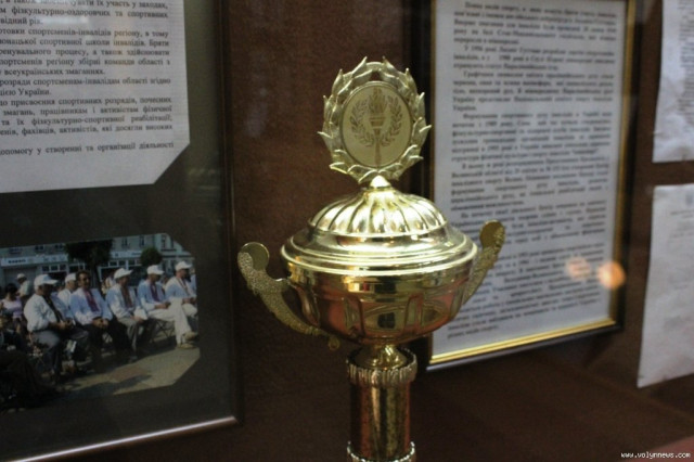 Науковець також зауважила, що в експозиції - нагороди, відзнаки, а також статті, світлини і навіть спортивний одяг й інвентар та інші матеріали, що допоможуть глядачеві зрозуміти, як відбувалося становлення і нині розвивається інвалідний спорт на Волині.