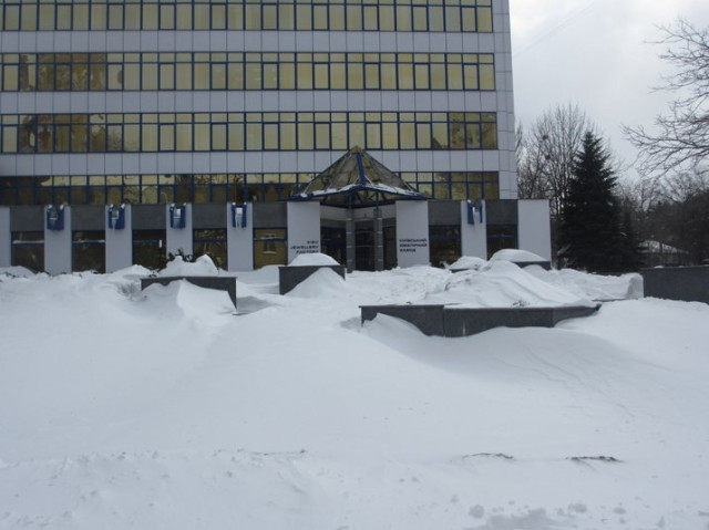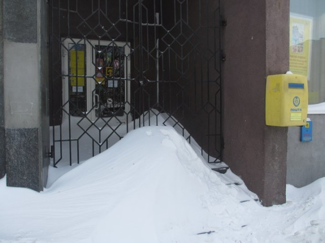 Вхід до поштового відділення на проспекті Науки засипало снігом.