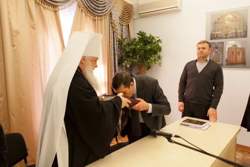 У відповідь, генеральний директор Заповідника Любомир Михайлина подарував Митрополиту Волинському і Луцькому Ніфонту наукове видання Заповідника: «Записки святителя Петра Могили» та альбом «Національний Києво-Печерський історико-культурний заповідник» з книжкової колекції «Великі музеї світу».
