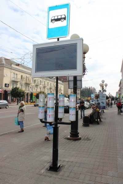 Табло встановили для ширшого доступу пасажирів до інформації про рух місцевих автобусів. Відомості подаються у табличному та схематичному вигляді та стосуються руху усіх маршруток, що є у місті.