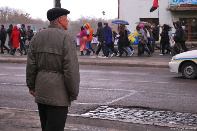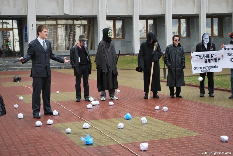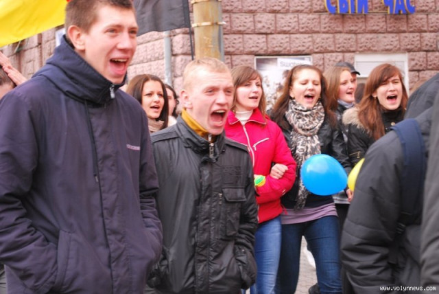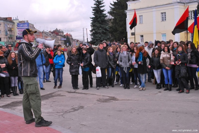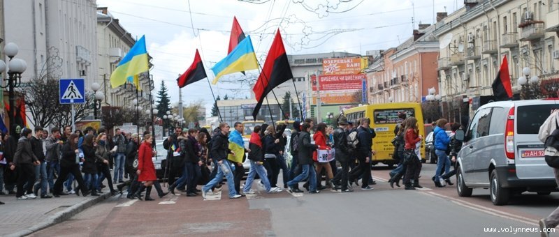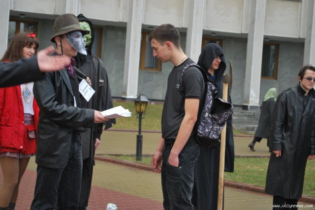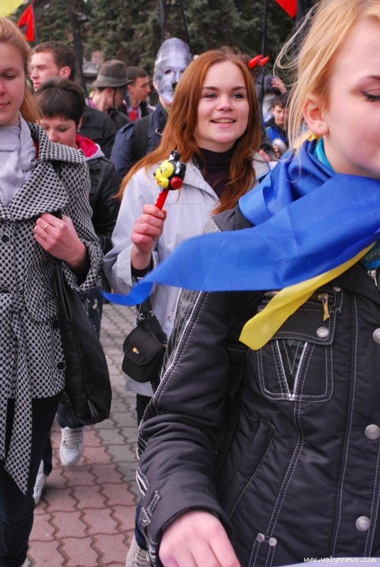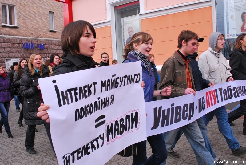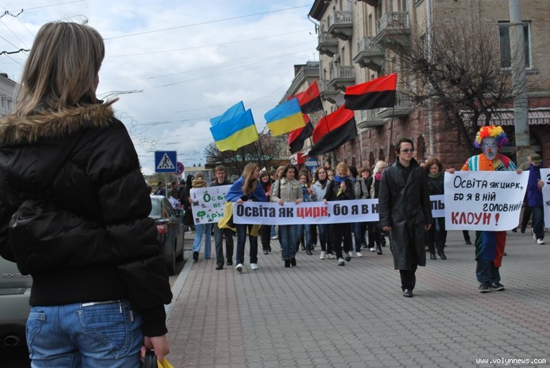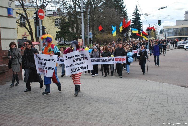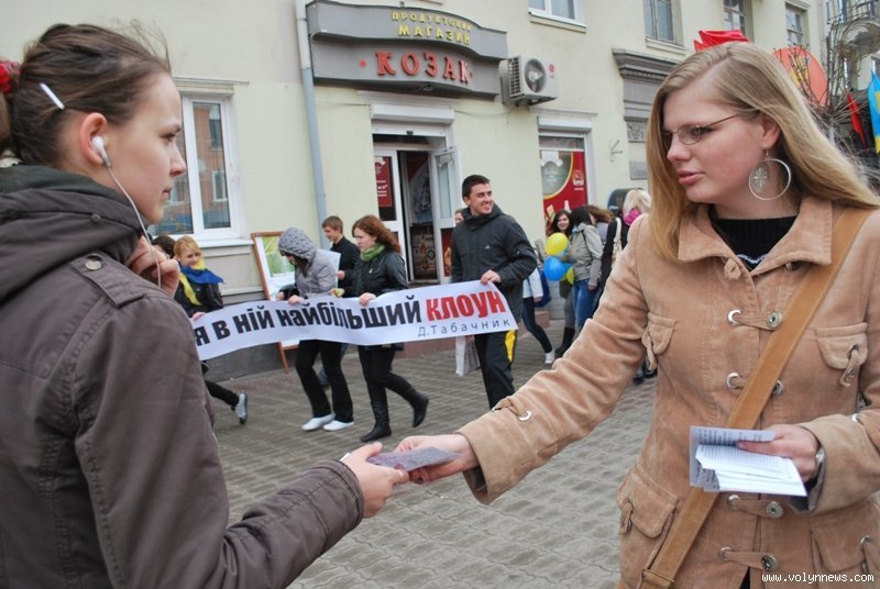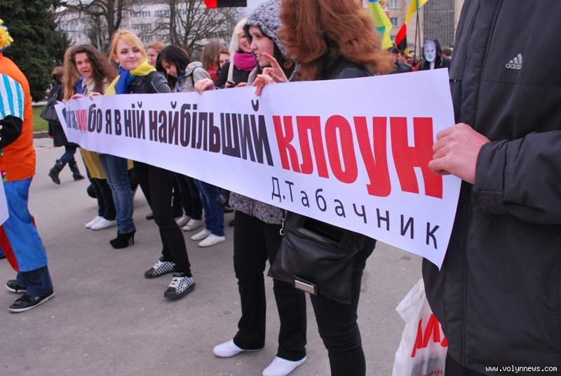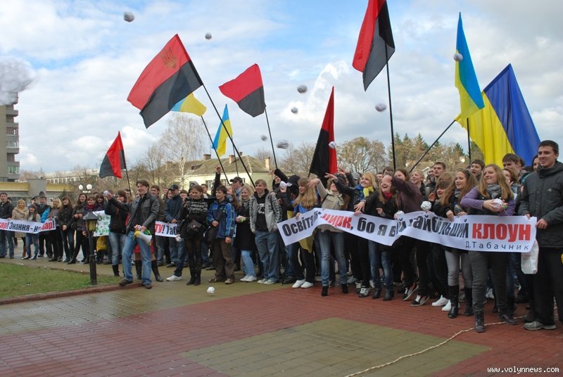 Близько двох сотень студентів Луцька зібрав 14 квітня «Карнавал ім. Діми Табачника», що розпочався на Театральному майдані та завершився під стінами облдержадміністрації.