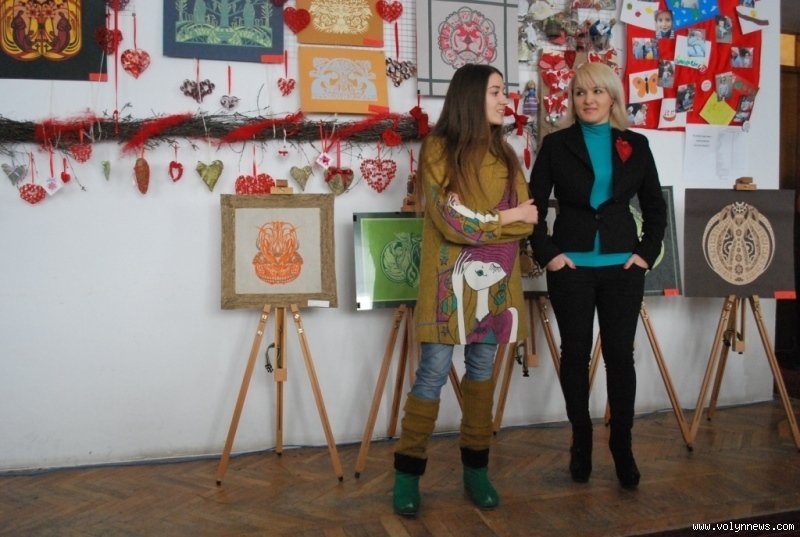 На заході представлені роботи студентів четвертого курсу Інституту мистецтв Волинського національного університету імені Лесі Українки. Зокрема це витинанки та валентинки.