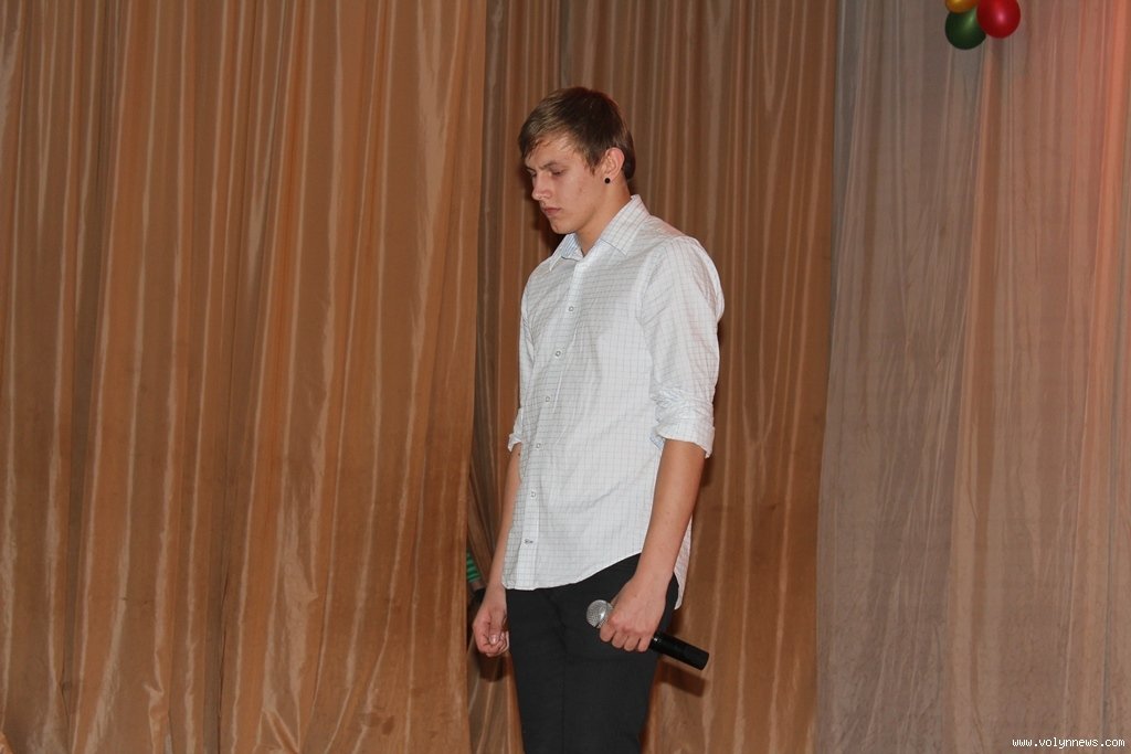 Після розіграшу першого лоту на сцену вийшов вихованець Луцького базового медичного коледжу Орест Ткачук.