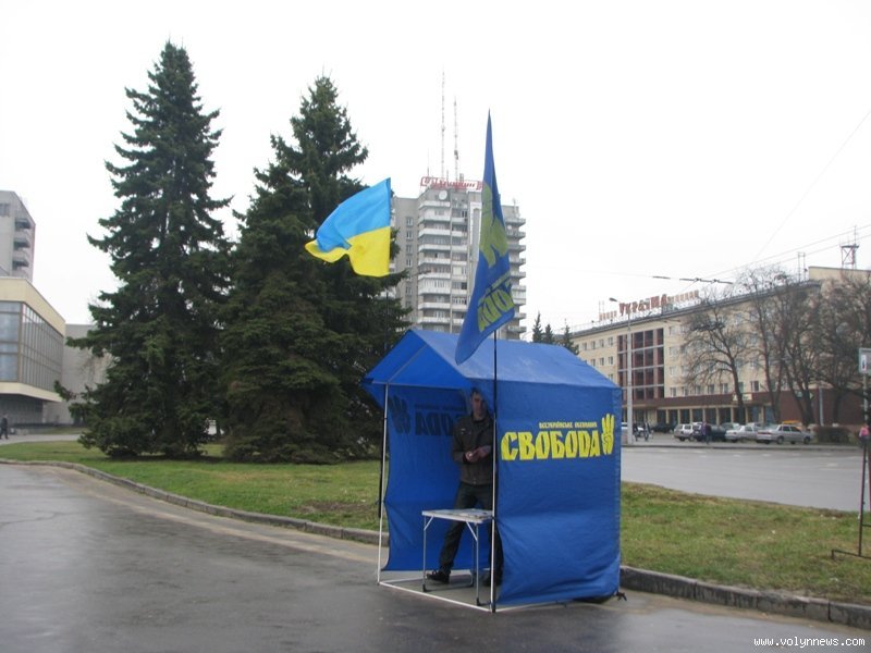 Водночас по сусідству з комуністами розмістився намет ВО «Свобода».