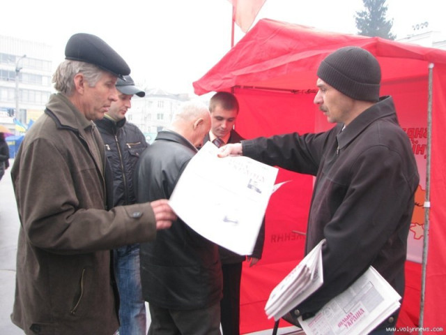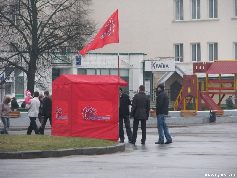 У центрі Луцька на Театральному майдані представники організації встановили намет, в якому розмістили скриньку, агітпродукцію та карту сучасної України. На останній - заклик до сплати благодійних внесків.
