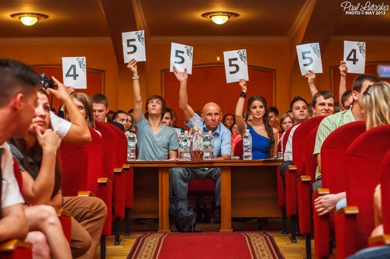 Оцінювали вроду, розум та талант лучанок перший проректор ЛНТУ Валентин Талах, ведучий Волинської ОДТРК Микита Чибар та організатори конкурсу Назар Грищук і Катерина Твердохліб.
