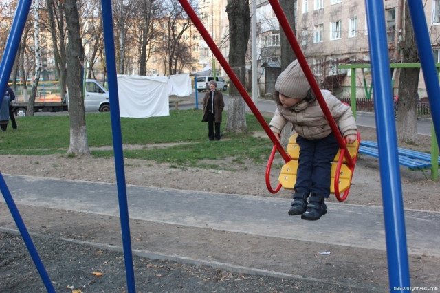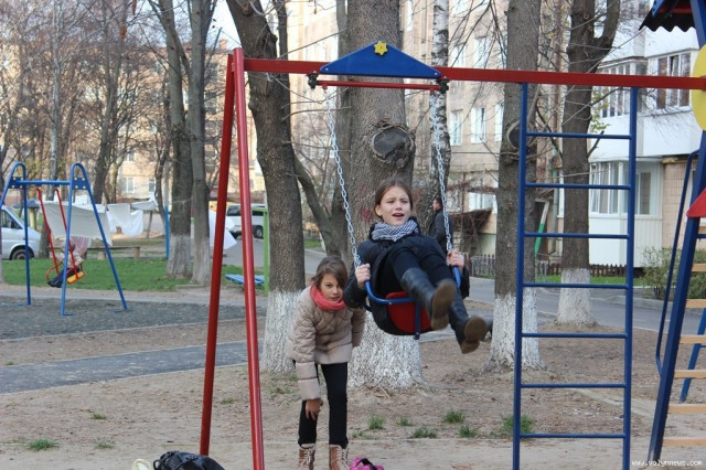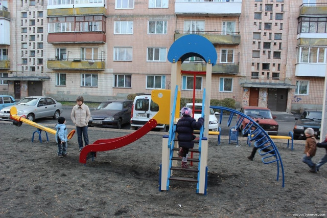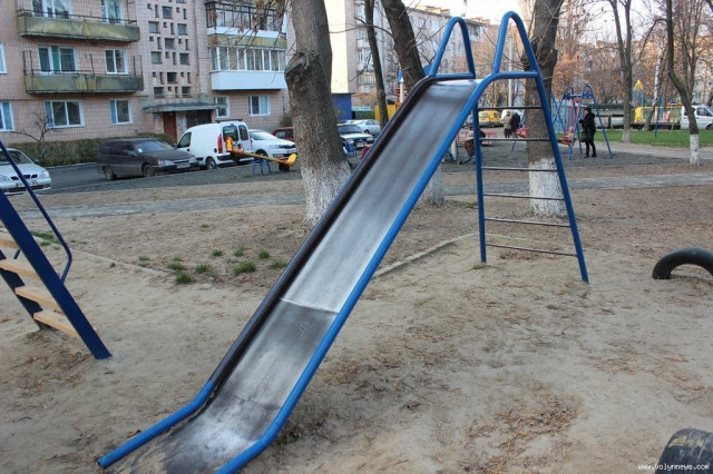 Пані Катерина теж живе поруч. Каже, що раніше єдиною розвагою для дітей була ось ця стара гірка. А для того, щоб десь побавитись з малечею приходилось йти в сусідні двори. Зараз, з її слів, двір просто не впізнати.