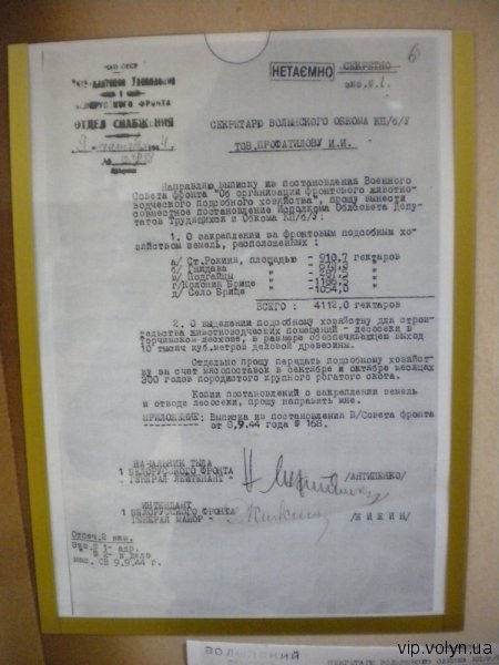У Державному архіві Волині експонують ксерокопії розсекречених документальних матеріалів 1944 року.