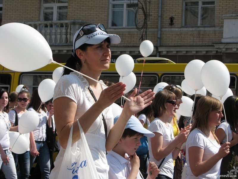 Учасники параду були одягнені у святковий білий одяг, а в руках несли білі повітряні кульки та плакати з написами типу «Міцна сім’я – міцна держава».