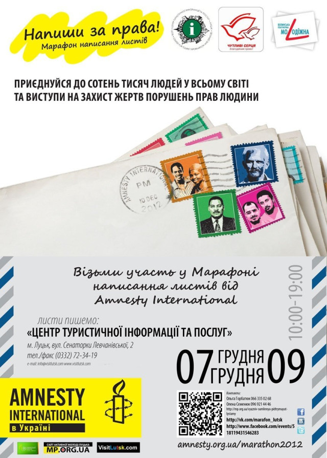 Всесвітній марафон написання листів солідарності з закликами зупинити порушення прав людини відбудеться цьогоріч і в Луцьку.