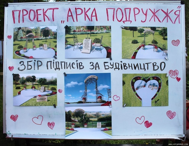 Окрім того, під час святкового дійства волонтери збирали підписи щодо будівництва «Арки подружжя». Як повідомили організатори, точного місця побудування ще не знають, адже усе потрібно погоджувати з місцевою владою, та вважають, що хоча би така конструкція стане доцільною у місті.