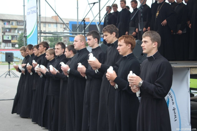 Відкрив «Волинський благовіст» хор вихованців Волинської Духовної Семінарії. Після їхнього виступу у небо випустили білих голубів як символ благодаті та миру.
