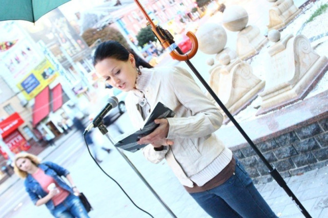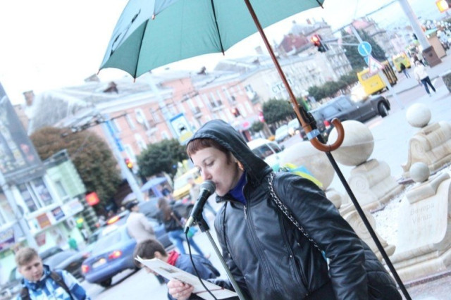 Чимало перехожих, не зважаючи на погоду, зупинялось послухати поетів, серед яких «ветерани» проекту Володимир Столярчук, Олександра Ватащук, Оксана Ганущак та інші.