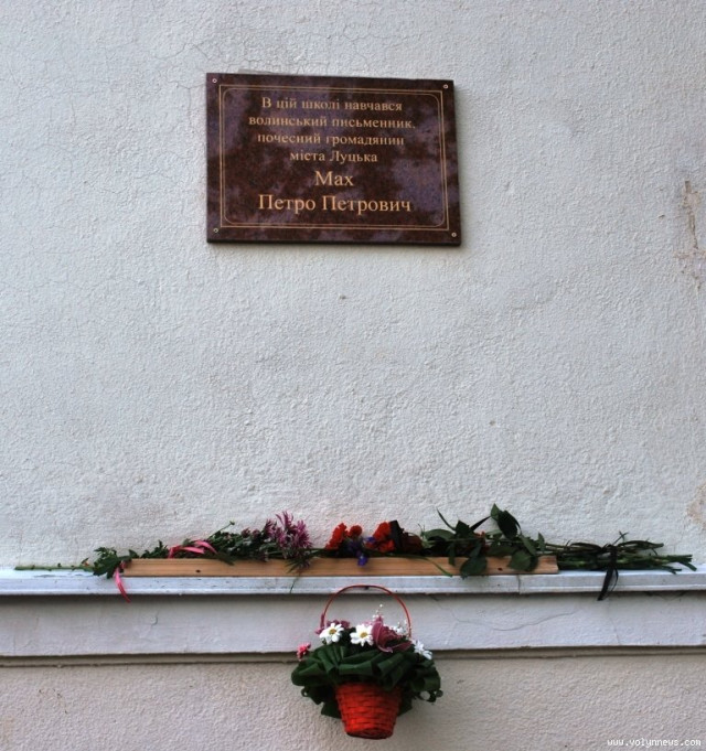 Меморіальну дошку волинському письменникові, Почесному громадянину міста Петрові Маху відкрили 25 травня у Луцькій спеціалізованій школі №1, де свого часу навчався митець.