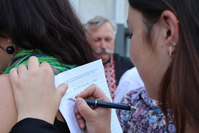 Проскандувавши «Ні – 2450!», активісти почали підписувати звернення до органів місцевої та державної влади.
