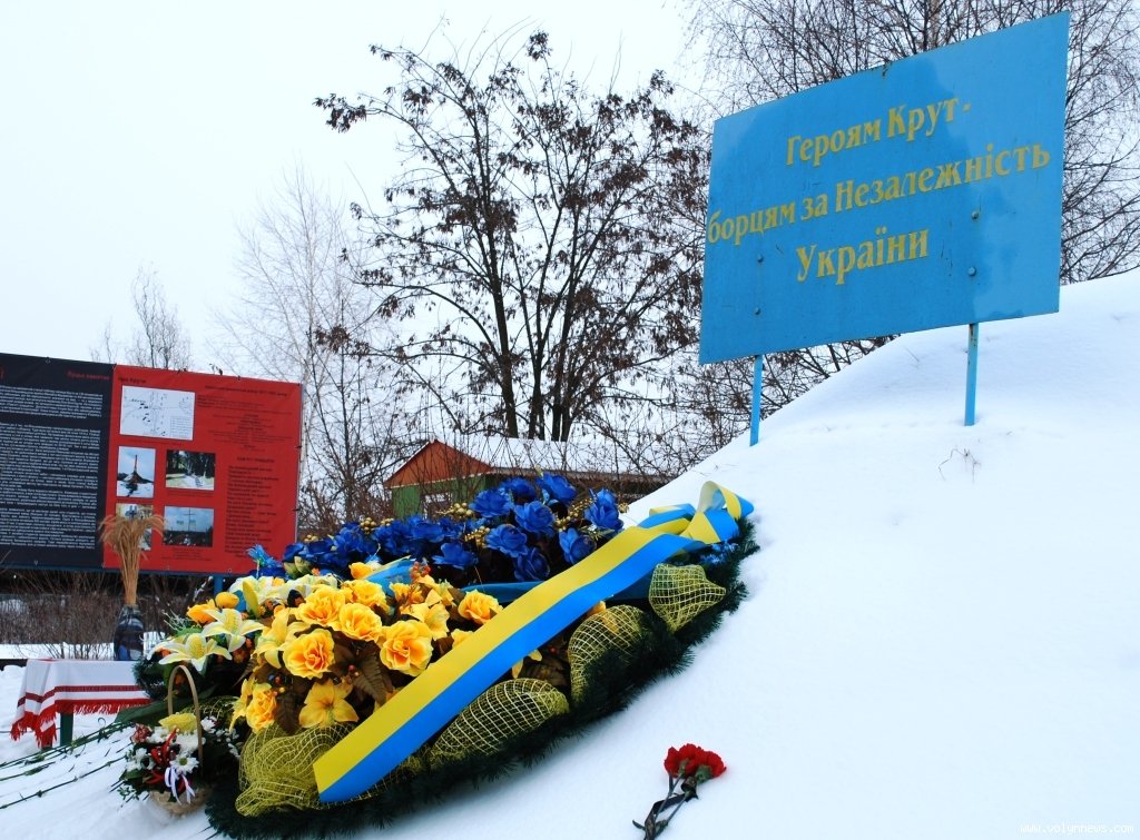 Довідково: Бій під Крутами відбувся 29 січня 1918 року (16 січня за старим стилем) на залізничній станції Крути під селищем Крути та поблизу села Пам'ятне, за 130 кілометрів на північний схід від Києва. Битва між 4-тисячною більшовицькою армією Михайла Муравйова та загоном з київських студентів й бійців вільного козацтва, кількістю у 400 вояків, тривала 5 годин. 27 юнаків, які потрапили після бою в полон до більшовиків, було страчено. У перебігу військових дій бій вирішального значення не мав, та у свідомості багатьох особливої ваги набув завдяки героїзму української молоді. Ця трагічна загибель студентів під Крутами стала символом патріотизму й жертовності у боротьбі за незалежність України та еталоном самопожертви заради майбутнього.