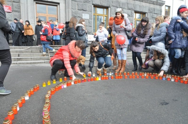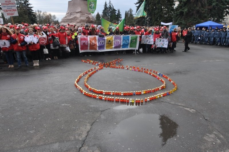 Почалася хода на Театральному майдані у Луцьку. Учасники дійшли до центрального корпусу СНУ імені Лесі Українки, де виклали лампадками своєрідну червону стрічку – міжнародний символ боротьби зі СНІДом.