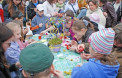 У неділю, 17 квітня, на Театральному майдані Луцька жителі та гості міста розписувати пасхальні писанки за допомогою майстрів писанкарства, а також оздоблювали дерев'яні та парафінові яйця.