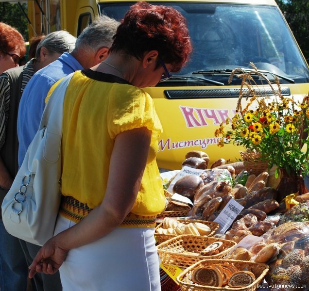 Втім, за спостереженнями репортера «ВН», більшу зацікавленість у лучан викликав ярмарок хлібопеків Волині - виставка «Хліб з нового урожаю». Тут представляють свою продукцію вісім підприємств з Луцького, Ковельського, Нововолинського, Володимир-Волинського та Любомльського районів.