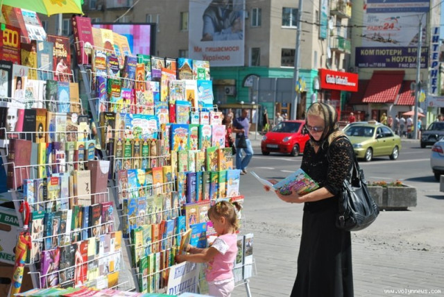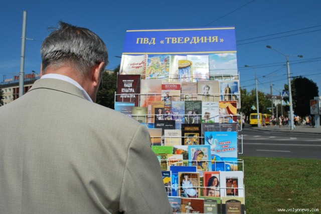 На стендах з книжками свою продукцію представляють видавництва «Твердиня», «Волинська книга», «Руніка» та «Ранок». Продавці кажуть, що в основному їхні клієнти - це діти. Тому дитячої книги, перекладеної українською мовою та ілюстрованої малюнками, тут не бракує.