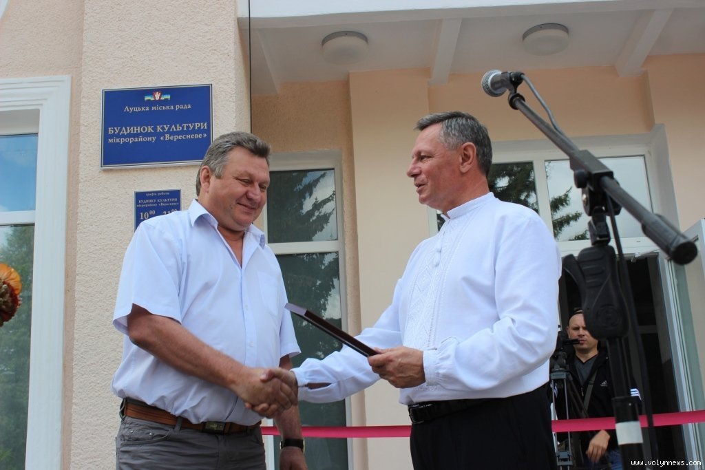 Подяки від міського голови отримали виконавці ремонтних робіт. Директор закладу Галина Марчук запросила усіх охочих у секції та гуртки, які працюють у Будинку культури. Мешканці Вересневого дякували народному депутату Ігорю Палиці за дитячий майданчик поруч з Будинком культури, облаштований за кошти «Фонду Ігоря Палиці – Новий Луцьк».
