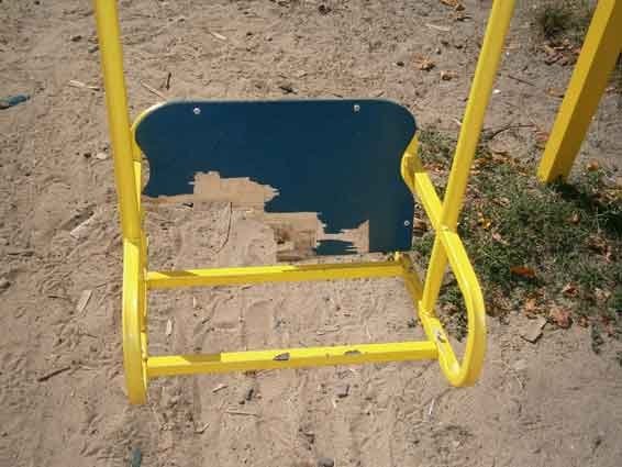 Сидіння на гойдалках повністю відсутні, лавки – обдерті, елементи декору – потрощені, в пісочниці фактично немає піску, на площадці – брудно. Такими стали встановлені минулого року в Ковелі дитячі майданчики.
