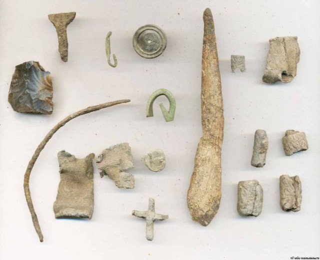 В об'єктах та культурному шарі виявлено значну кількість керамічного посуду, вироби з кістки і рогу, в тому числі глиця для плетіння сітки, свинцеві грузила до сітки, залізні ножі, залізний наконечник остроги, фрагмент бронзової блешні, свинцевий хрестик.