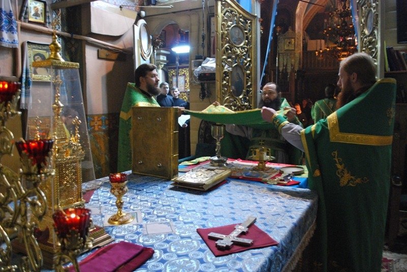 Очолив Богослужіння клірик Свято-Покровського храму архімандрит Аліпій (Сапіга), йому співслужили: голова інформаційно-просвітницького відділу протоієрей Валентин Марчук та клірик Свято-Покровського храму ієромонах Ілля (Вишневський), також було двоє дияконів: протодиякон Ростислав Петров та диякон Петро Провальский.