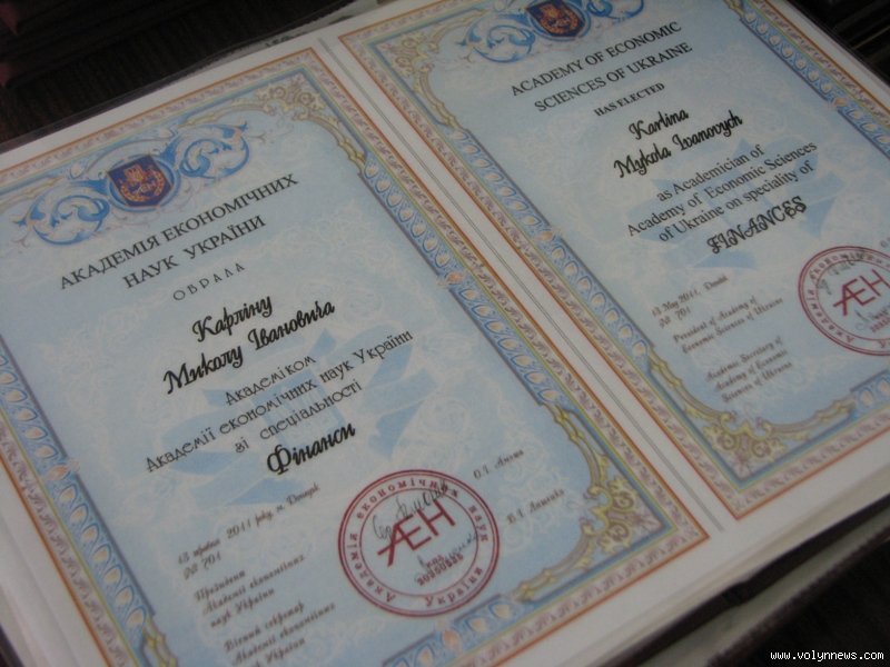 Цього дня диплом Академіка Академії економічних наук України вручили професору Миколі Карліну, диплом члена-кореспондента Академії економічних наук України отримала кандидат економічних наук, доцент Віра Ліщук. Атестат професора вручили політологу Валерію Бортнікову та іншим.