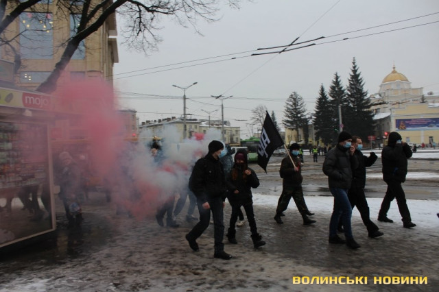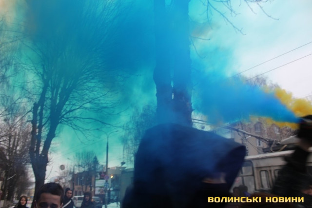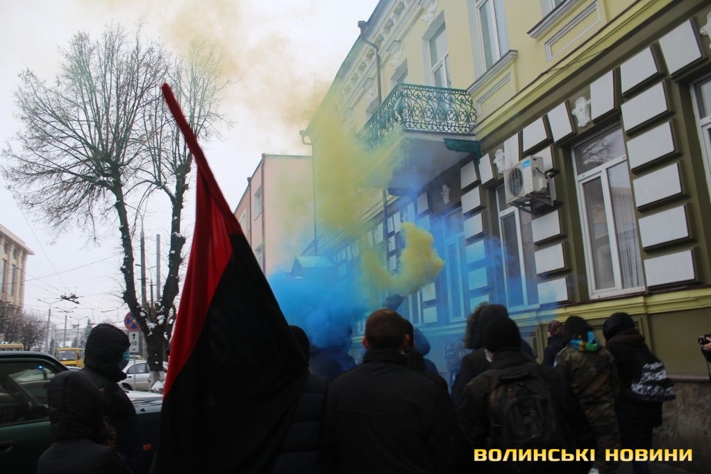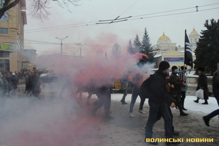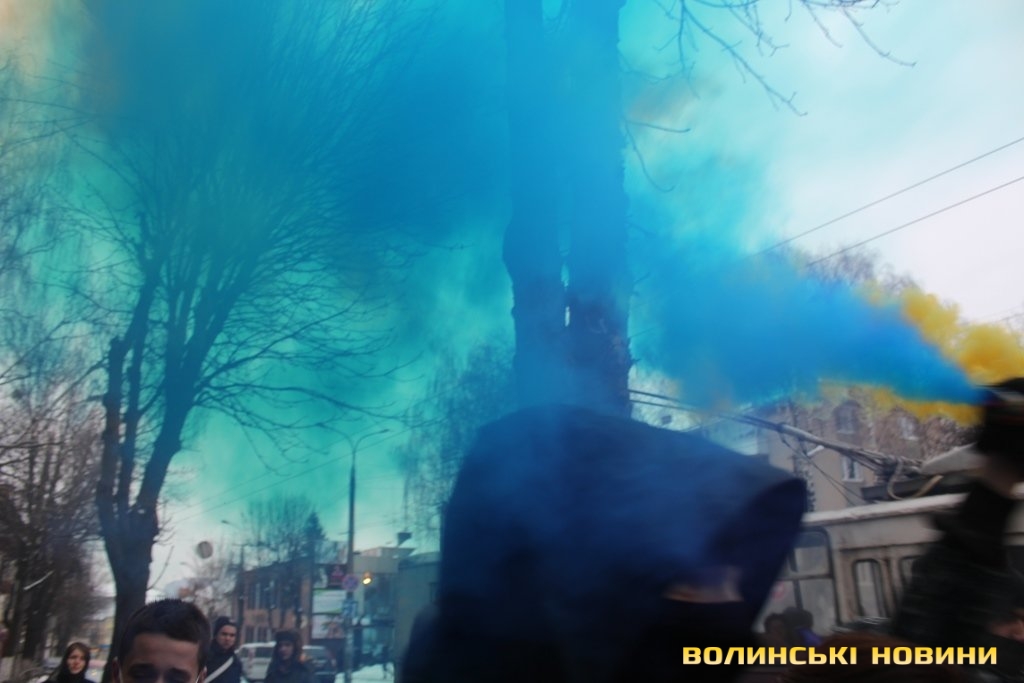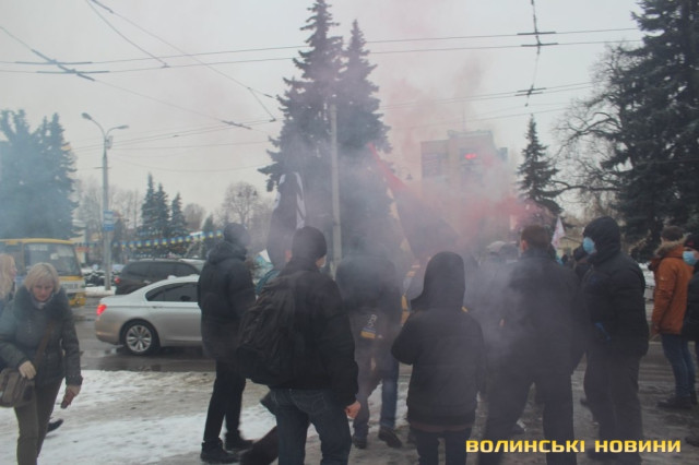 Після завершення акції, що відбулася поблизу прокуратури Волинської області 17 січня, колона пікетувальників вирушила у напрямку Театрального майдану. Її супроводжувала чимала кількість правоохоронців. Дехто з учасників заходу запалив димові шашки.