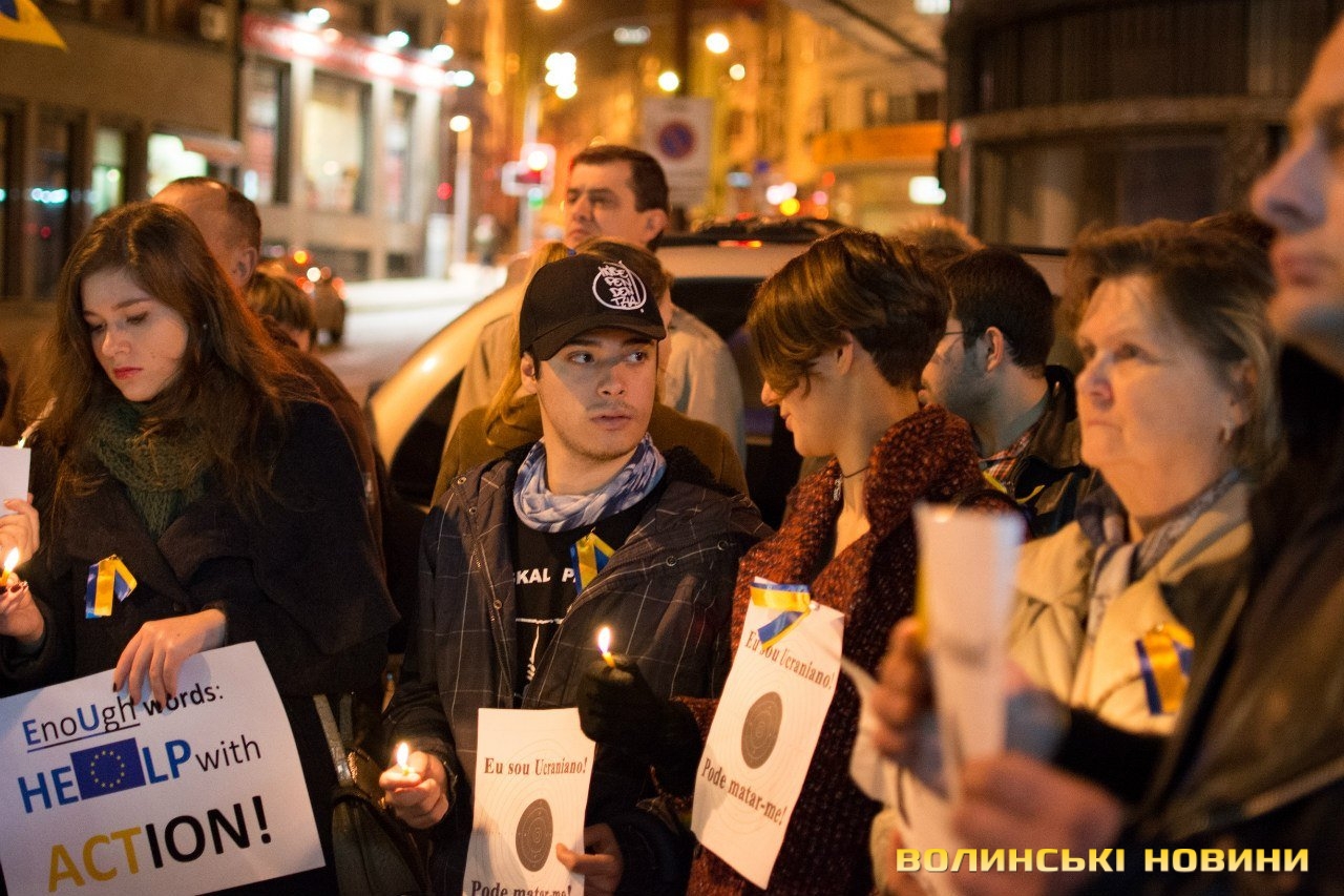 Акції на підтримку України відбуваються у португальському місті Порто. Тут згадують загиблих на Євромайдані у Києві.
