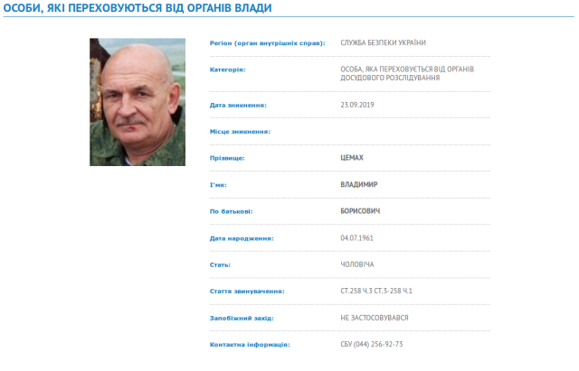 Зазначається, що Цемах розшукується на вимогу Служби безпеки.