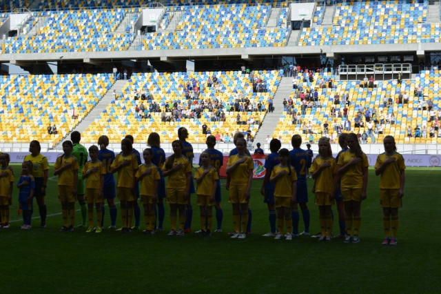 Подивитися на матч жіночих збірних прийшло близько тисячі вболівальників. Перед стартовим свистком пролунали гімни обох держав: «Ще не вмерли України…» та «Ой свієтла майська зоро» («Ой, світла травнева зоря»). Загиблих на Луганщині військових вшанували хвилиною мовчання.