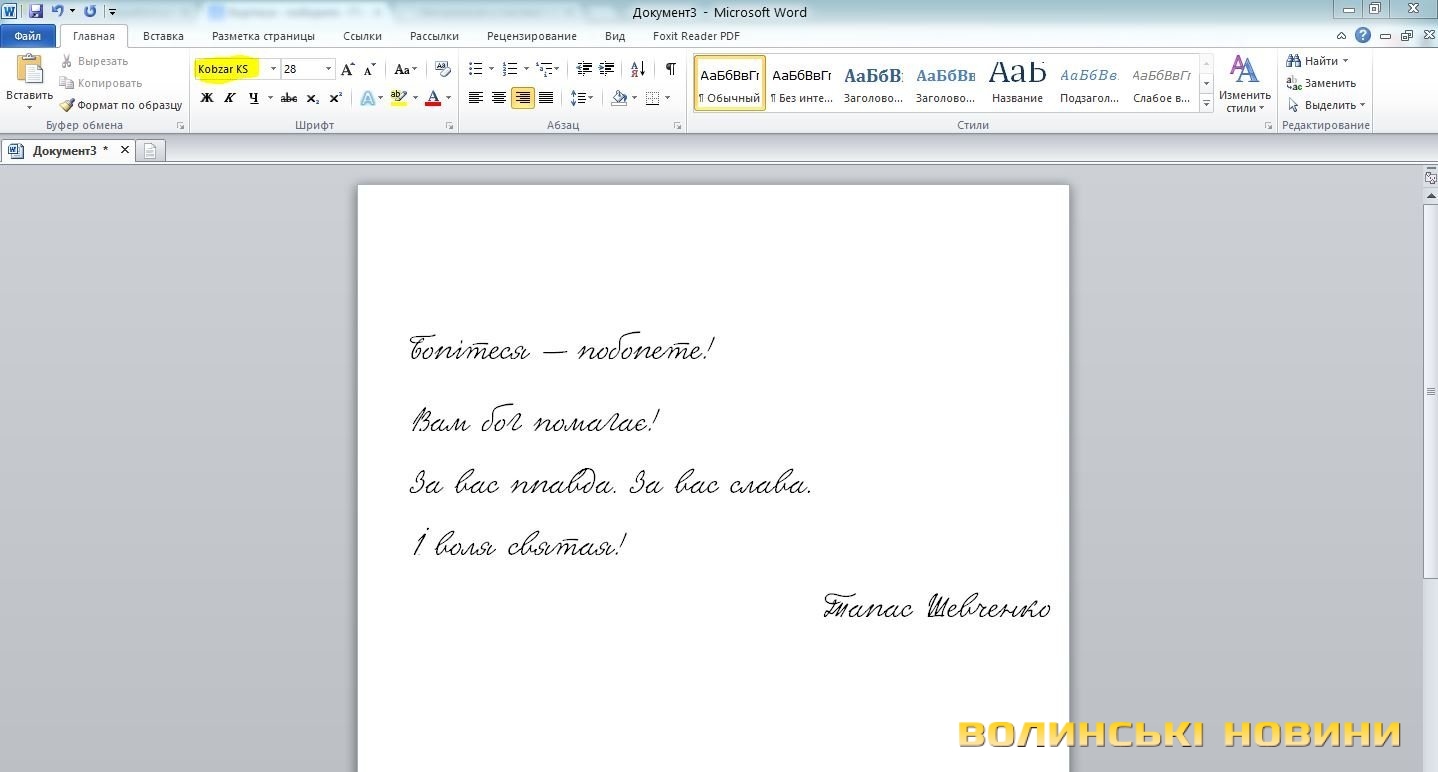 Група українських розробників створили шрифт під назвою KobzarKS, відтворивши у ньому почерк відомого українського поета та художника Тараса Шевченка.