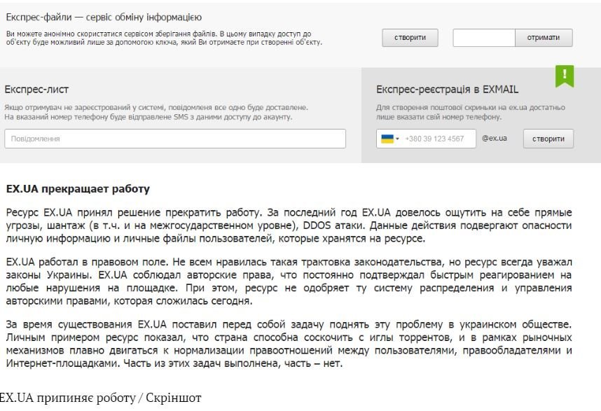 Український файлообмінник EX.UA припиняє роботу