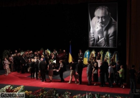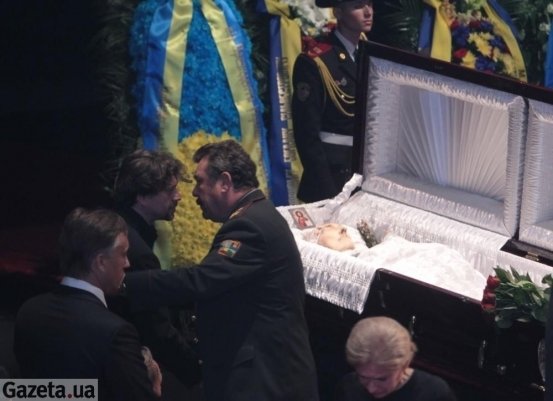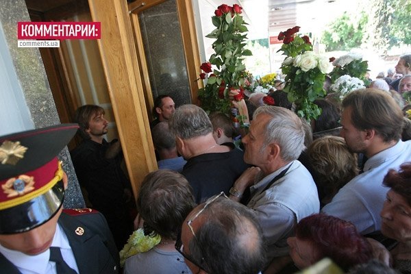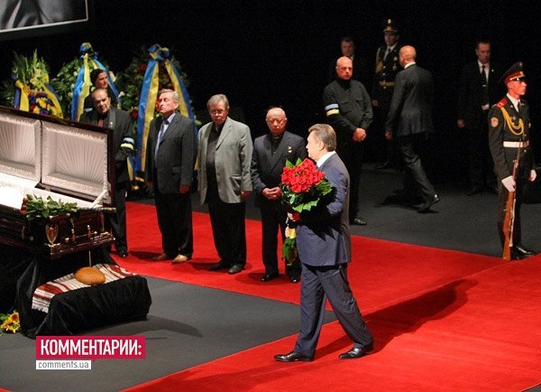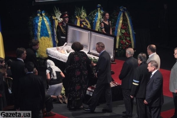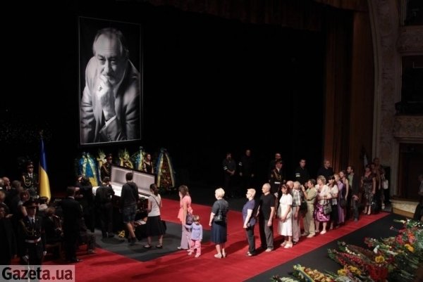 Попрощатися зі знаменитим актором прийшли екс-президент України Віктор Ющенко з екс-главою Секретаріату Вірою Ульянченко, через деякий час прибув другий екс-президент Леонід Кучма, рівно об 11:00 прибув Віктор Янукович, який перервав свою відпустку. Разом із ним прибули віце-премʼєр-міністр ‒ міністр охорони здоровʼя України Раїса Богатирьова, віце-премʼєр-міністр України ‒ міністр інфраструктури Борис Колесніков, віце-премʼєр-міністр України ‒ міністр соцполітики Сергій Тігіпко, керівник головного управління з гуманітарних та суспільно-політичних питань Адміністрації Президента Ганна Герман, міністр культури України Михайло Кулиняка та інші.