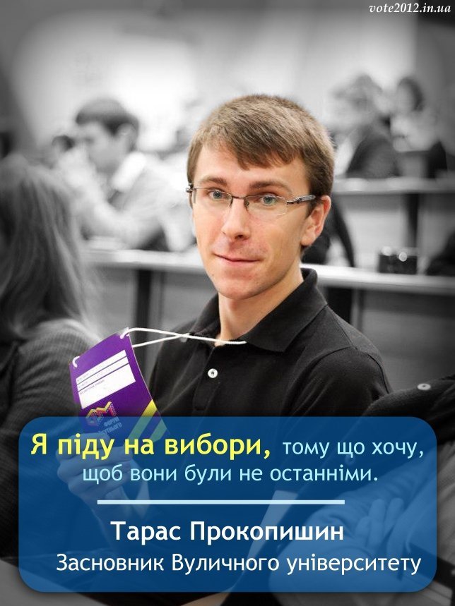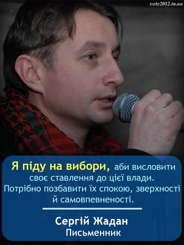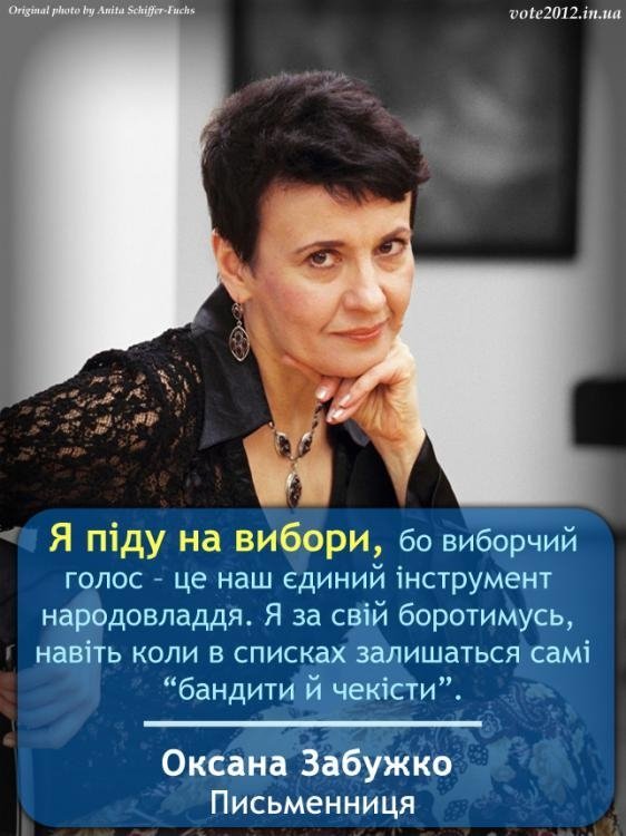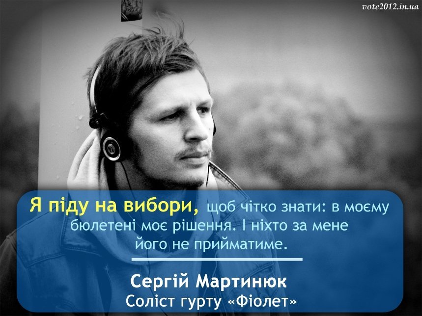 Молодіжна ініціатива «Обери своє майбутнє» створила фотопроект, у рамках якого відомі українці пояснюють, чому вони підуть на вибори. Щодо цього висловились і волиняни – українська письменниця Оксана Забужко та вокаліст луцького гурту «Фіолет» Сергій Мартинюк.