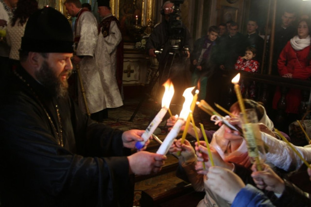 Опівнічну, хресний хід та Ранню очолив декан протоієрей Микола Нецькар. Перед Літургією до храму ввійшов митрополит Луцький і Волинський Михаїл із благодатним вогнем, який він разом з іншими прочанами привіз із Єрусалима.